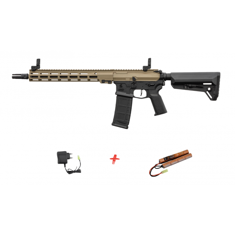 LANCER TACTICAL - Pack Réplique Fusil Airsoft M4 AEG Stalker 12" LT-44 GEN 2 NSR - DUAL TONE