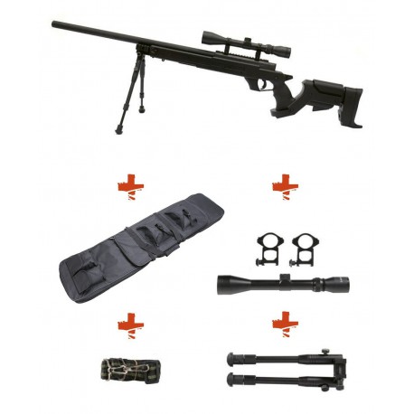 WELL - Pack Sniper MB04D Noir avec lunette 3-9X40 + bipied + sangle + housse